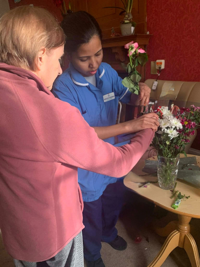 Residents carefully selected their blooms and arranged them into colourful displays, taking pride in creating something unique and personal. The finished arrangements brought a wonderful burst of colour to the home and were displayed around shared spaces for everyone to enjoy.